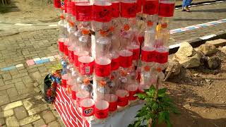 Proses pemasangan gapura 17 agustus 2019 dari limbah botol bekas mineral dengan menghabiskan 700 botol bekas,selama 1 bulan proses pembuatannya.